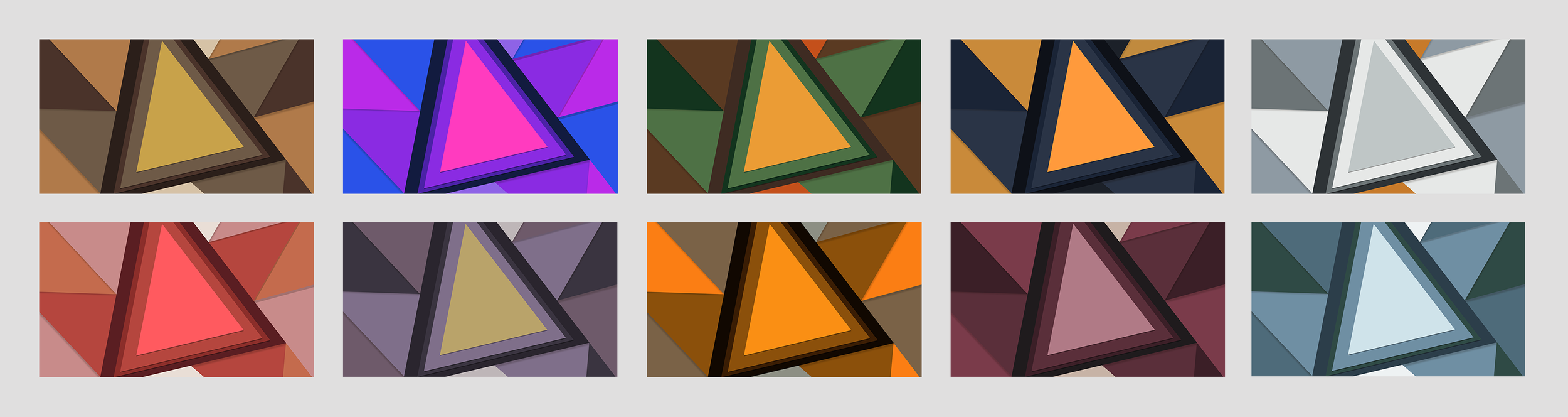 In my first humble pack, which I'm simply calling "The Triangle Pack", there are 10 themes, and I've made them all available for 16:9, 21:9 and mobile displays.